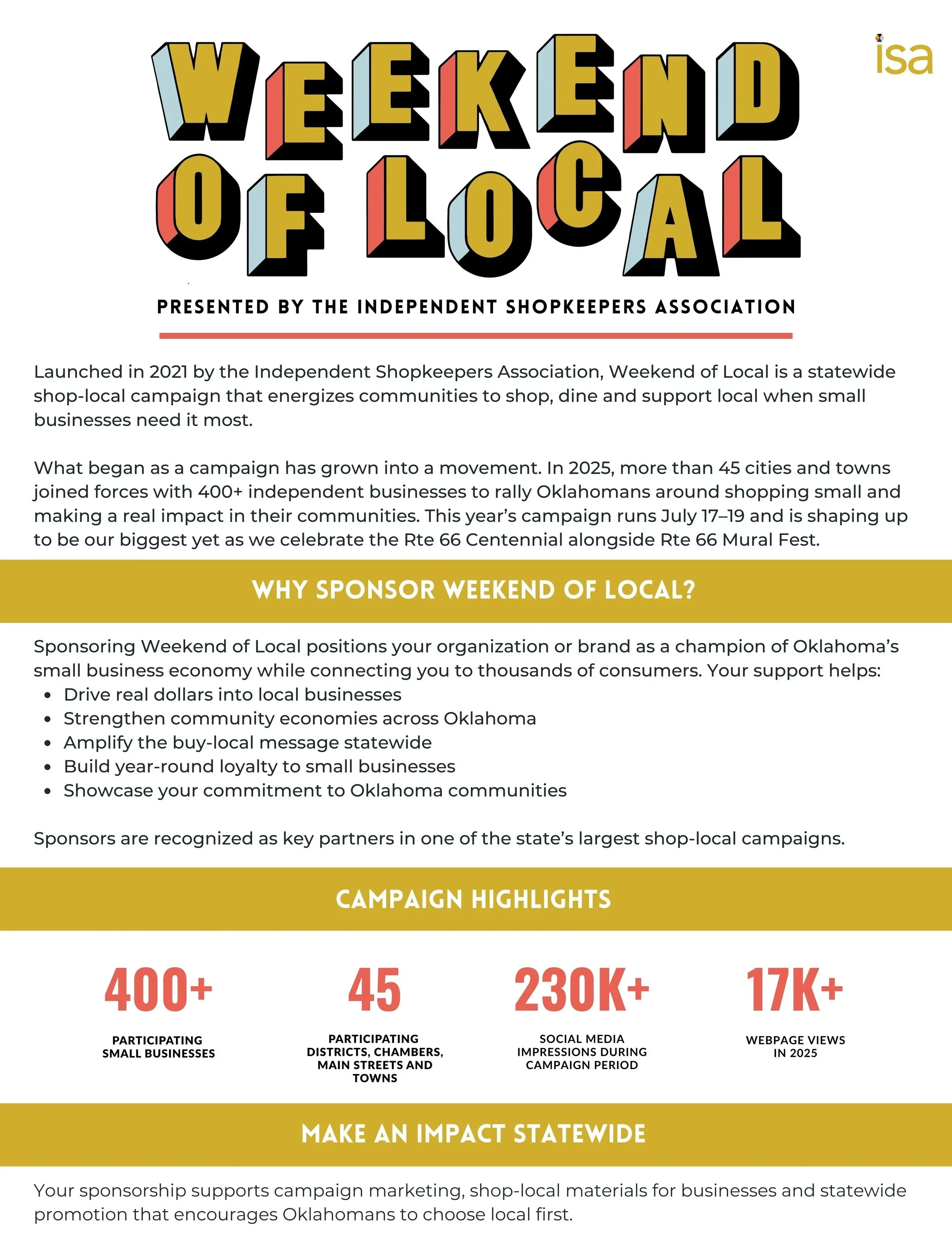 I want to sponsor the Weekend of Local
